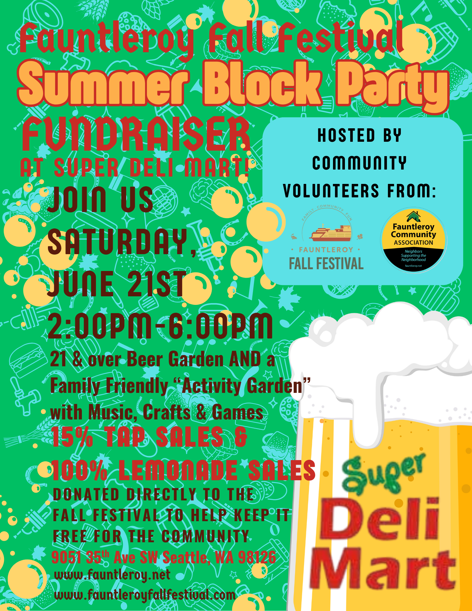 The Fall Festival will be holding a Fauntleroy Fall Festival Summer Block Party at the Super Deli mat!